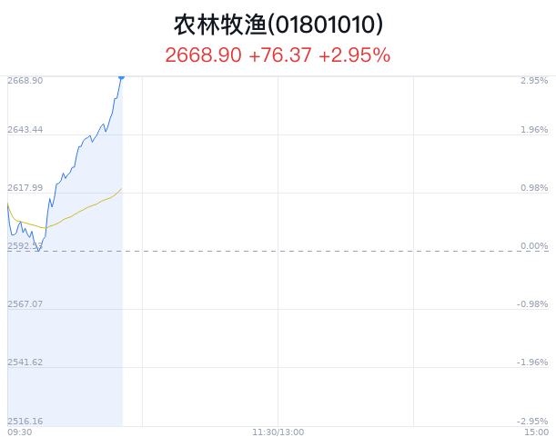 04月22日,农林牧渔行业盘中拉升,截至10点21分,农林牧渔行业整体指数上涨3.01%,报2670.640点。