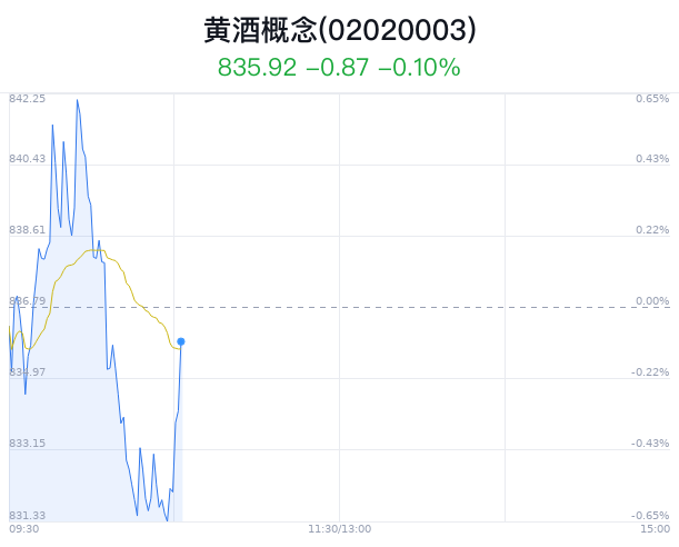 04月12日,黄酒概念盘中拉升,截至10点34分,黄酒概念整体指数上涨0.55%,报835.920点。