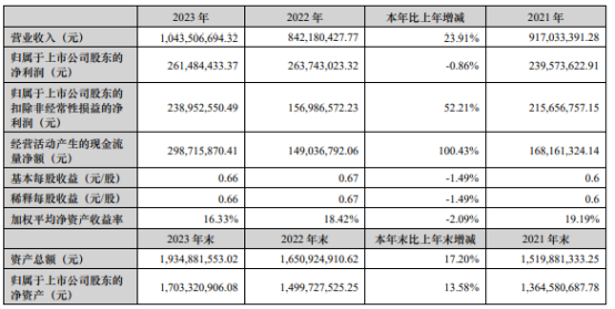 挖贝网4月15日,艾德生物 近日发布2023年年度报告,报告期内公司实现营业收入1,043,506,694.32元,同比增长23.91%;归属于上市公司股东的净利润261,484,433.37元,同比下滑0.86%。