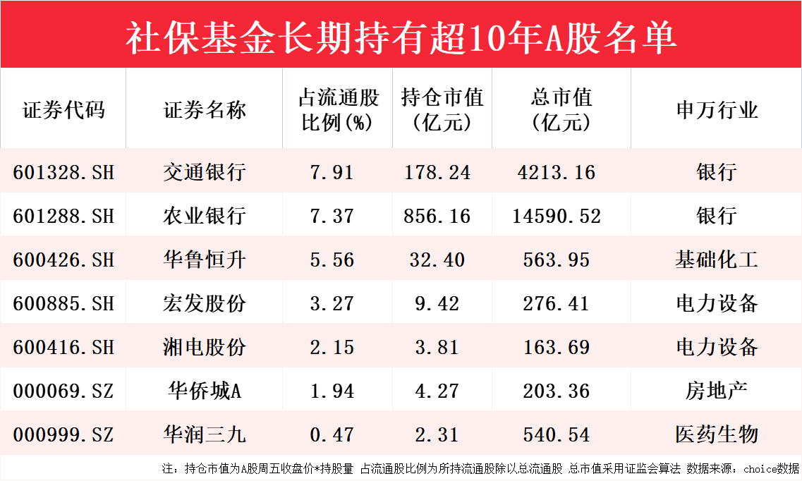 社保基金A股投资路线图:持仓华侨城A和华润三九均超12年,长期持仓股名单来了