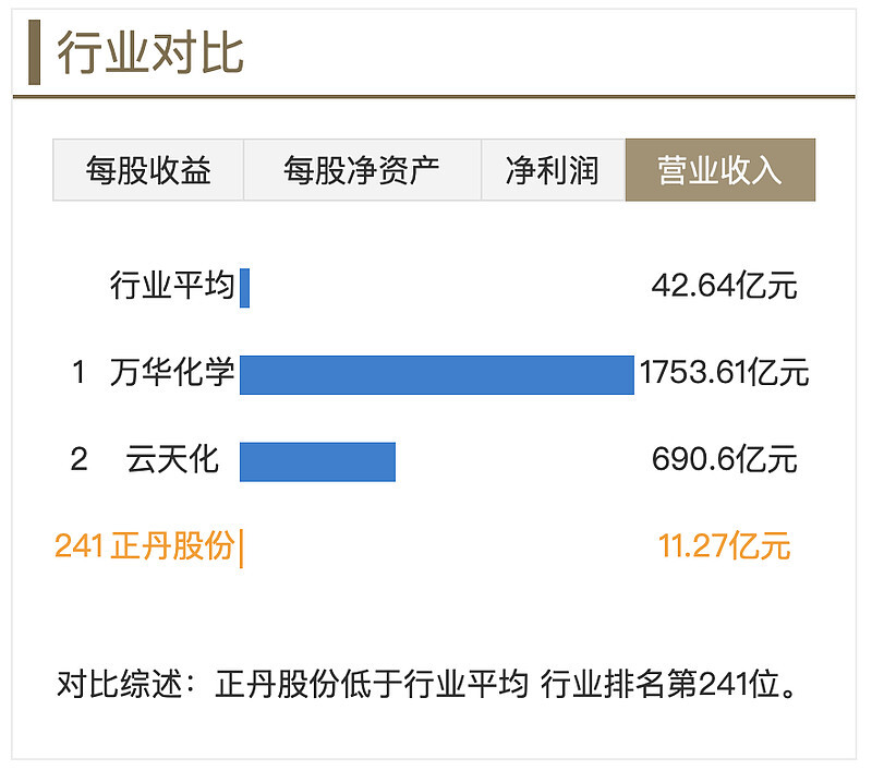 从营业收入方面来看,正丹股份低于行业平均,行业排名第241位。