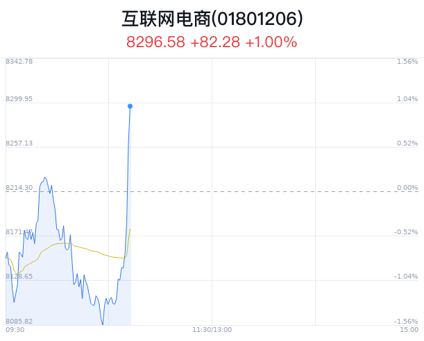 04月19日,互联网电商行业盘中拉升,截至10点43分,互联网电商行业整体指数上涨1.00%,报8296.580点。