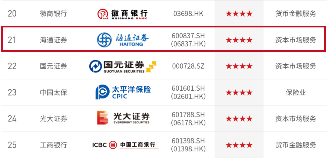 海通证券入选“中国ESG上市公司金融业先锋30”榜单