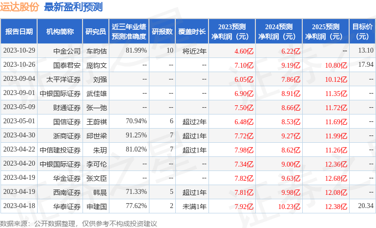 以下是详细的盈利预测信息: