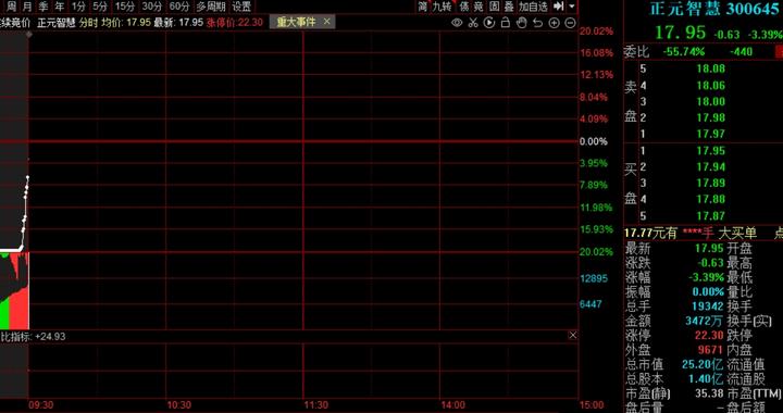 11月13日,正元智慧开盘跌超3%,报17.95元。昨日,正元智慧发布公司实际控制人、董事、高级管理人员被采取强制措施的进展公告。