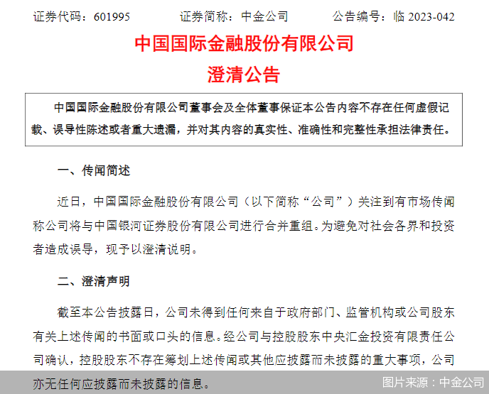 中国银河、中金公司双双澄清合并重组传闻