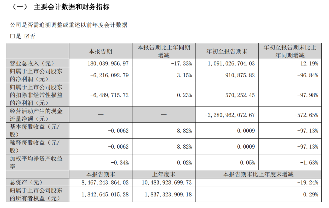 弘业期货近期发布的三季报显示,该公司前三季度实现营收约10.91亿元,同比增长12.91%;归属上市公司股东净利润约91.09万元,同比下降96.84%;实现扣非净利润约为57.03万元,同比下降97.98%;基本每股收益0.0009元,同比下降97.13%。