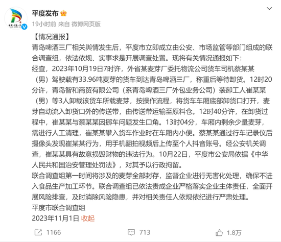 青岛啤酒(600600.SH)厂,真有工人爬进原料仓小便吗?真相已经水落石出。