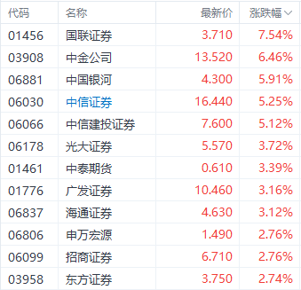 券商股迎两大利好!中金和国联证券均涨超6%领先中资券商
