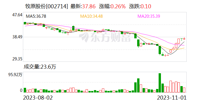 9月末以来,受多重因素影响,牧原股份股价在10月遭遇重挫,跌幅一度超过17%。