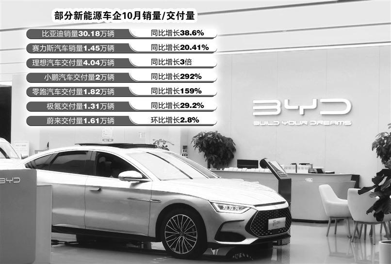 新能源车企10月竞相大卖 比亚迪月销量突破30万辆