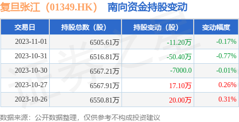 复旦张江(01349.HK):11月1日南向资金减持11.2万股