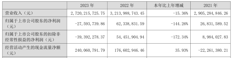 挖贝网4月27日,百洋股份 近日发布2023年年度报告,报告期内公司实现营业收入2,720,215,725.75元,同比下滑15.36%;归属于上市公司股东的净利润-27,593,739.86元,较上年同期由盈转亏。