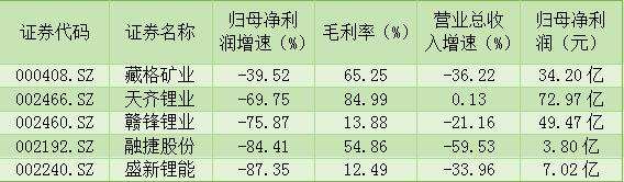 归母净利润方面,情况更为严峻。5家企业平均净利润下滑71.38%,即便表现相对较好的藏格矿业,利润也下跌了39.52%。行业领军企业赣锋锂业和天齐锂业利润分别下滑75.87%和69.75%,显示出行业头部企业的盈利能力也受到了较大冲击。