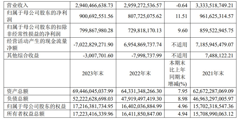 2023年度,中银证券实现营业收入29.40亿元,同比减少0.64%;营业支出19.22亿元,同比减少6.57%;实现归属于母公司股东的净利润9.01亿元,同比增长11.51%;加权平均净资产收益率为5.36%,较上年增加0.33个百分点。