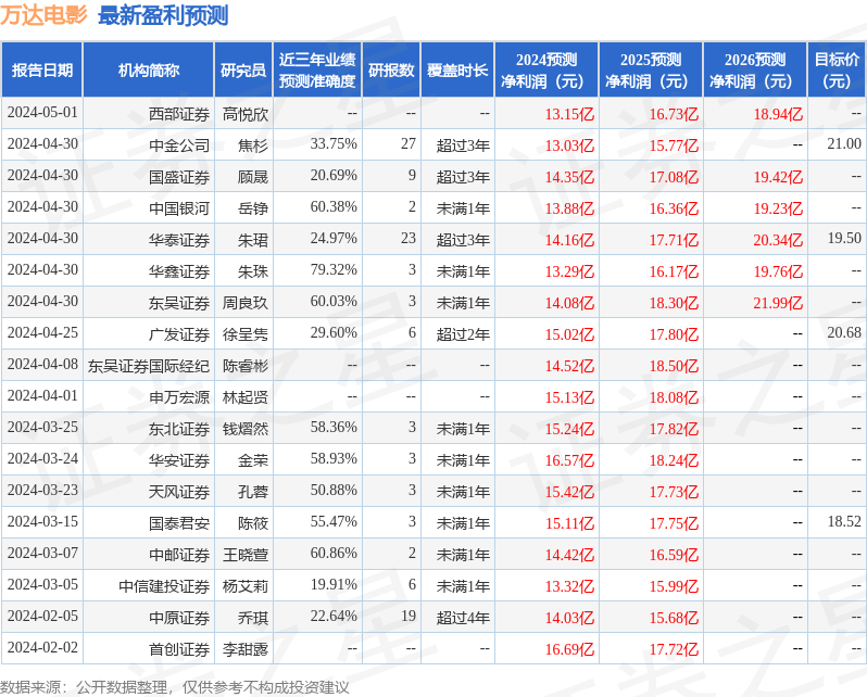 东吴证券股份有限公司张良卫,周良玖,郭若娜近期对万达电影进行研究并发布了研究报告《2023年报&2024年一季报点评:利润略低预期,期待后续内容业务带来惊喜》,本报告对万达电影给出买入评级,当前股价为14.63元。