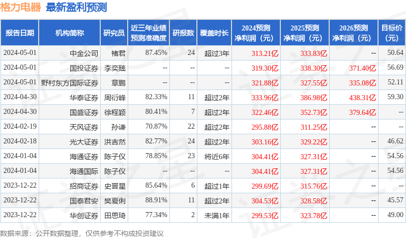 证券之星数据中心根据近三年发布的研报数据计算,国泰君安樊夏俐研究员团队对该股研究较为深入,近三年预测准确度均值高达88.91%,其预测2024年度归属净利润为盈利304.53亿,根据现价换算的预测PE为7.79。