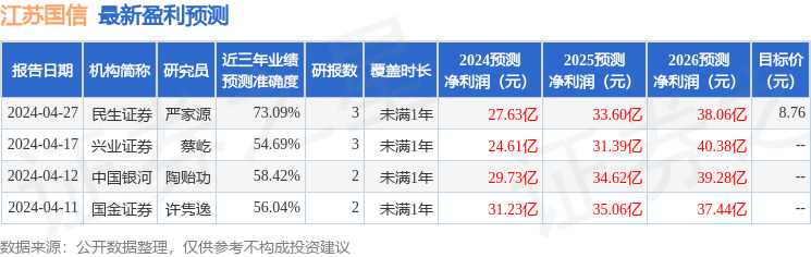 证券之星数据中心根据近三年发布的研报数据计算,民生证券严家源研究员团队对该股研究较为深入,近三年预测准确度均值为73.09%,其预测2024年度归属净利润为盈利27.63亿,根据现价换算的预测PE为11.37。