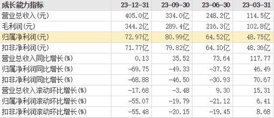 天齐锂业预计今年一季度净亏损为36亿元至43亿元,去年同期净利润为48.75亿元,同比由盈转亏。值得注意的是,天齐锂业2023年实现营业收入405.03亿元,同比增长0.13%;净利润72.97亿元,同比下降69.75%。从单季度业绩来看,公司2023年四季度净利润为亏损8.01亿元,一季度亏损环比也大幅增加。