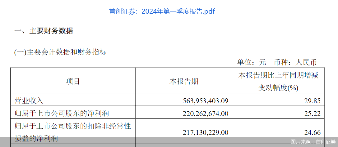 首创证券一季报:归母净利润2.2亿元 同比增长25.22%