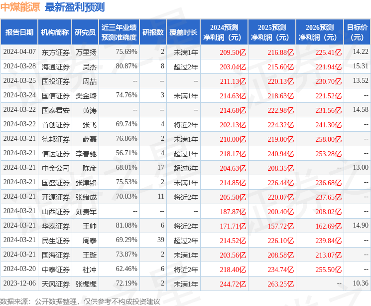 德邦证券股份有限公司翟堃,薛磊,谢佶圆近期对中煤能源进行研究并发布了研究报告《中煤能源:产销下滑拖累业绩,产业布局成长可期》,本报告对中煤能源给出买入评级,当前股价为11.51元。