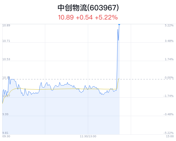 04月25日,中创物流(603967)股价大幅上涨,截至13点43分,中创物流上涨5.22%,报10.89元/股,成交9334万元,换手率2.60%,振幅7.63%。