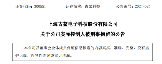涉嫌操纵证券市场罪!古鳌科技实控人被刑拘,交易所发函!