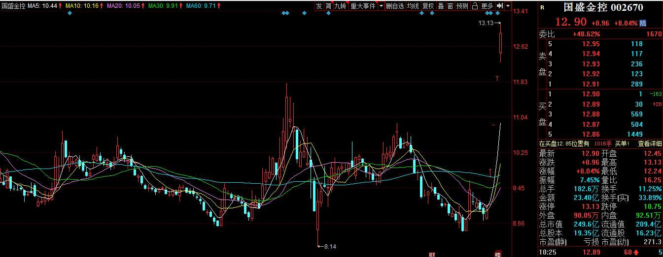 5月6日,国盛金控大涨,截至发稿,股价报12.90元,涨8.04%。