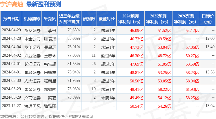 东兴证券股份有限公司曹奕丰近期对宁沪高速进行研究并发布了研究报告《业绩稳健分红提升,主业投资稳步推进》,本报告对宁沪高速给出增持评级,当前股价为11.35元。