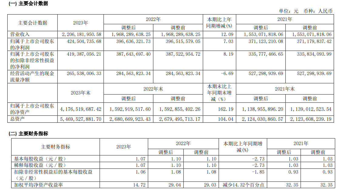 报告显示,2023年天玛智控实现营业收入22.06亿元,同比增长12.09%;归属于上市公司股东的净利润4.25亿元,同比增长7.03%,归属于上市公司股东的扣除非经常性损益的净利润4.19亿元,同比增长8.19%。基本每股收益1.07元。