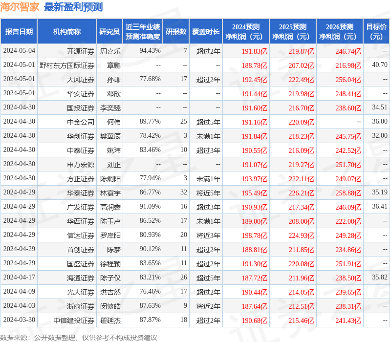 群益证券:给予海尔智家增持评级,目标价位36.0元