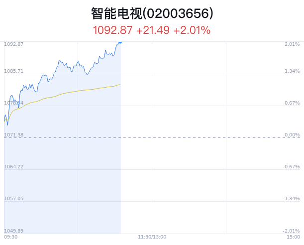 04月26日,智能电视概念盘中拉升,截至11点05分,智能电视概念整体指数上涨2.01%,报1092.870点。