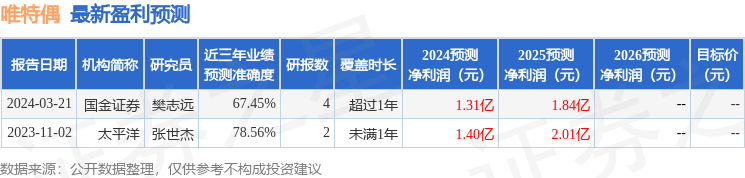 以下是详细的盈利预测信息: