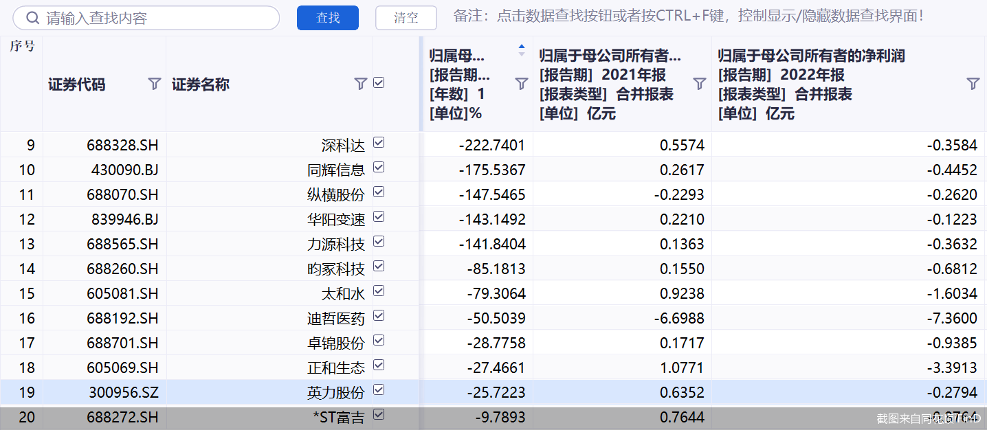 在上述70股中,经统计,还有太和水等19股在2022年、2023年净利连亏。