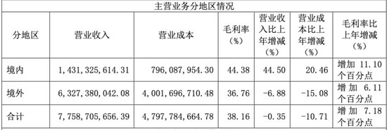按经营地区来看,2023年,梦百合境内主营业务收入为14.31亿元,境外主营业务收入为63.27亿元,境内外主营业务的收入的占比分别为18.44%、81.56%,仍未打破“80/20”的魔咒。