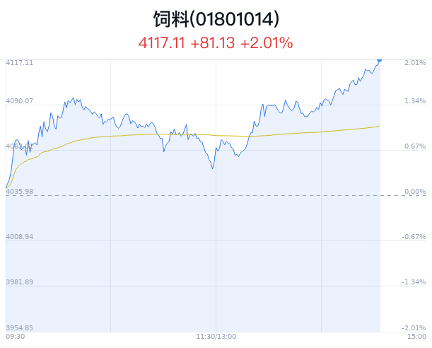 04月29日,饲料行业盘中拉升,截至14点34分,饲料行业整体指数上涨2.01%,报4117.110点。