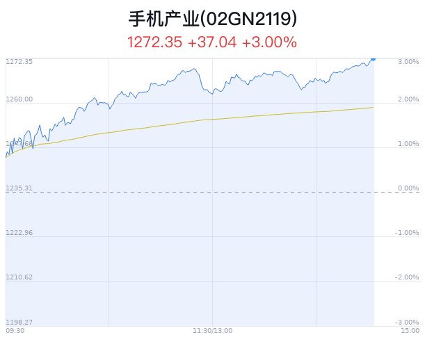 04月29日,手机产业概念盘中拉升,截至14点35分,手机产业概念整体指数上涨3.00%,报1272.350点。