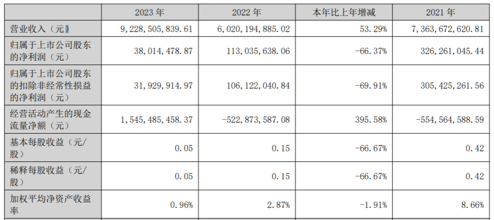 广宇集团2023年营收92.29亿元,归母净利同比下滑超六成 | 年报速递