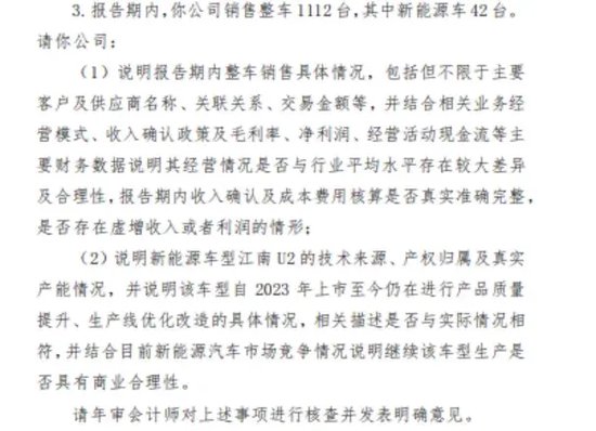 深交所要求其说明,2023年该公司整车销售具体情况,并说明该公司经营情况是否与行业平均水平存在较大差异及合理性等问题。