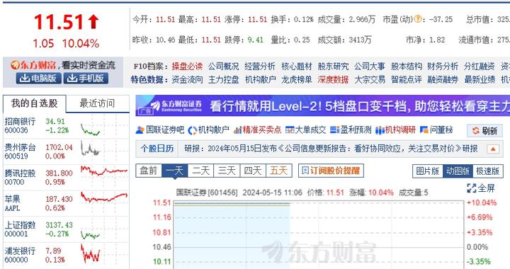 【环球网金融综合报道】5月15日,国联证券A股股票复牌,开盘一字涨停,报11.51元/股。消息面上,前一日晚,国联证券宣布,拟通过发行A 股股份的方式向国联集团、沣泉峪等 46 名交易对方购买其合计持有的民生证券100%股份,并募集配套资金。