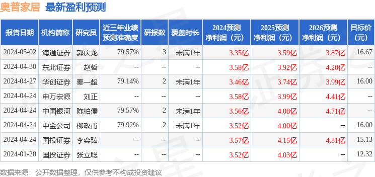 以下是详细的盈利预测信息: