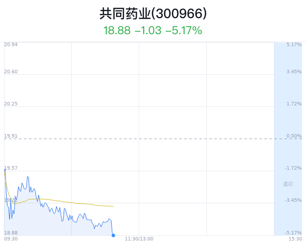 05月17日,共同药业(300966)股价大幅下跌,截至11点07分,共同药业下跌5.17%,报18.88元/股,成交8102万元,换手率5.89%。