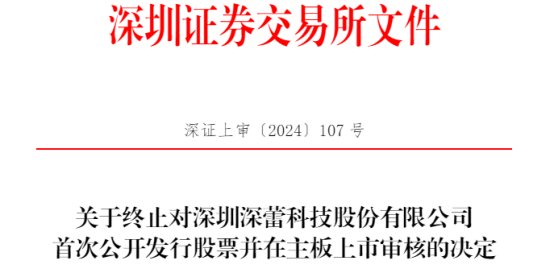 深交所于2023年6月30日依法受理了深蕾科技首次公开发行股票并在主板上市的申请文件,并依法依规进行了审核。日前,深蕾科技向深交所提交了《深圳深蕾科技股份有限公司关于撤回首次公开发行股票并在主板上市申请文件的请示》,保荐人向深交所提交了《关于撤回深圳深蕾科技股份有限公司首次公开发行股票并在主板上市申请文件的申请》。根据《深圳证券交易所股票发行上市审核规则(2024年修订)》第六十二条的有关规定,深交所决定终止对深蕾科技首次公开发行股票并在主板上市的审核。