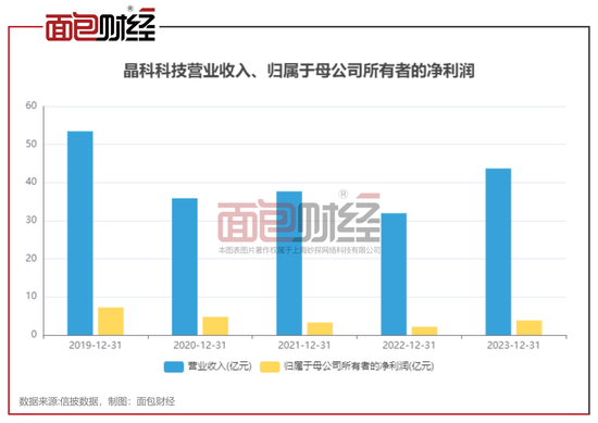 2023年,晶科科技实现营收43.7亿元,同比上升36.72%;归母净利润3.83亿元,同比上升77.05%。