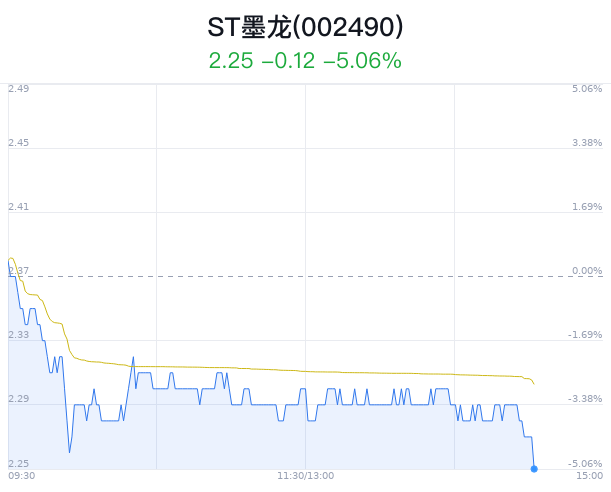 05月10日,ST墨龙(002490)股价大幅下跌,截至14点32分,ST墨龙触及跌停,报2.25元/股,成交2521万元,换手率2.02%。