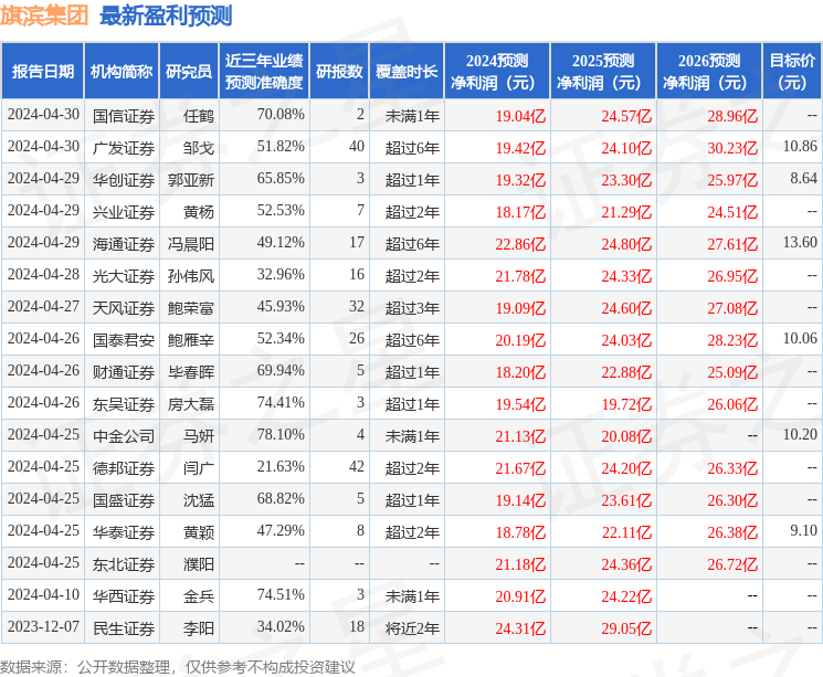 最新盈利预测明细如下: