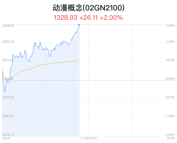 05月16日,动漫概念盘中拉升,截至11点19分,动漫概念整体指数上涨2.00%,报1328.930点。