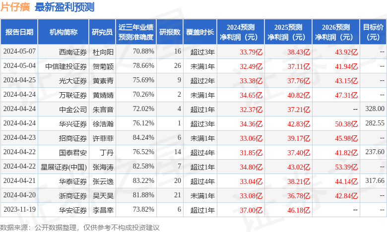 证券之星数据中心根据近三年发布的研报数据计算,招商证券许菲菲研究员团队对该股研究较为深入,近三年预测准确度均值高达84.24%,其预测2024年度归属净利润为盈利33.06亿,根据现价换算的预测PE为43.63。