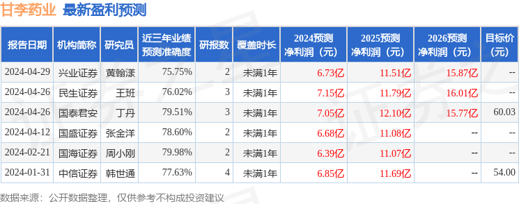 西南证券股份有限公司杜向阳,王彦迪近期对甘李药业进行研究并发布了研究报告《业绩符合预期,接续集采中标未来盈利可期》,本报告对甘李药业给出增持评级,当前股价为48.8元。