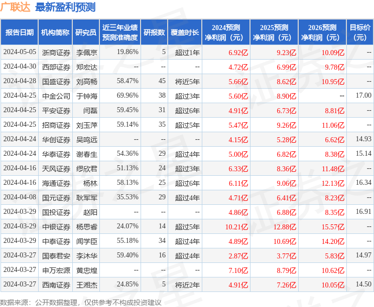 以下是详细的盈利预测信息: